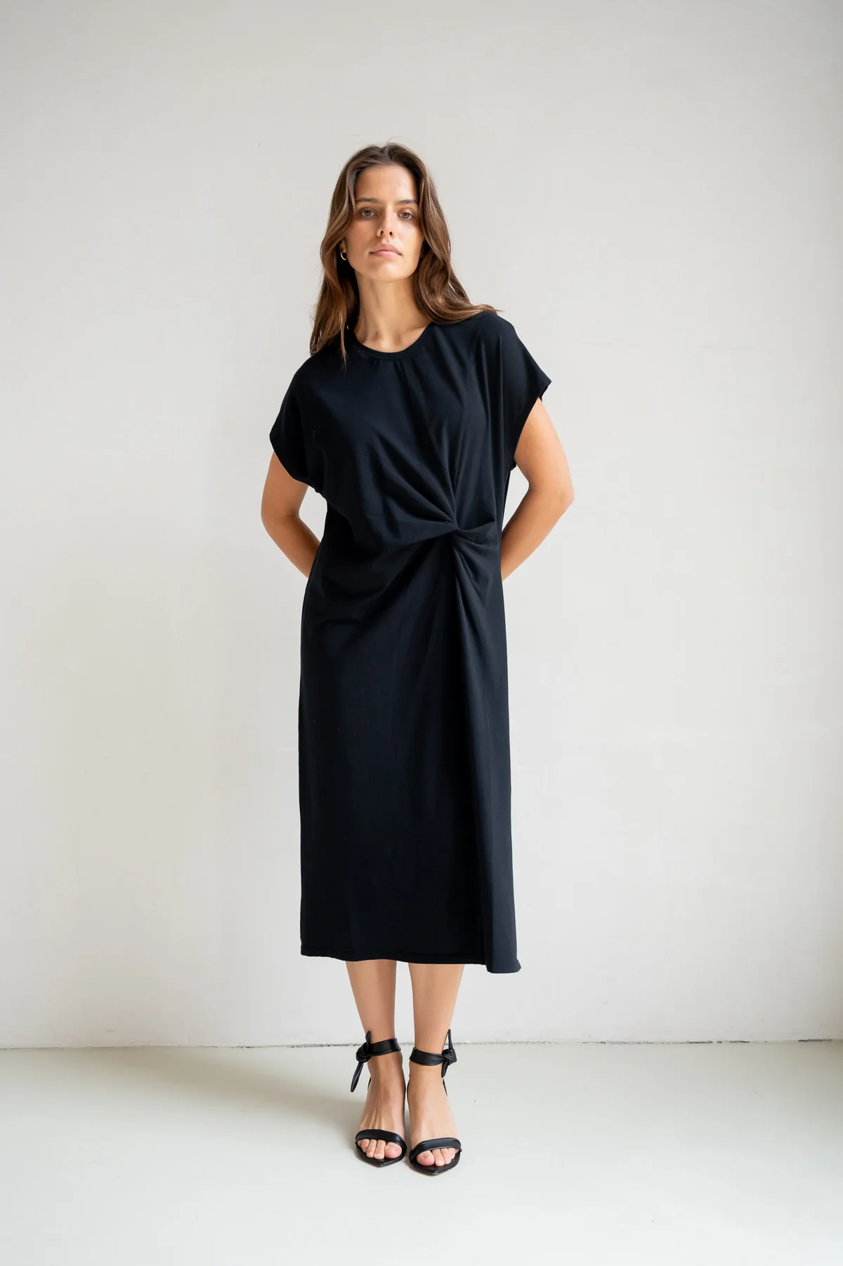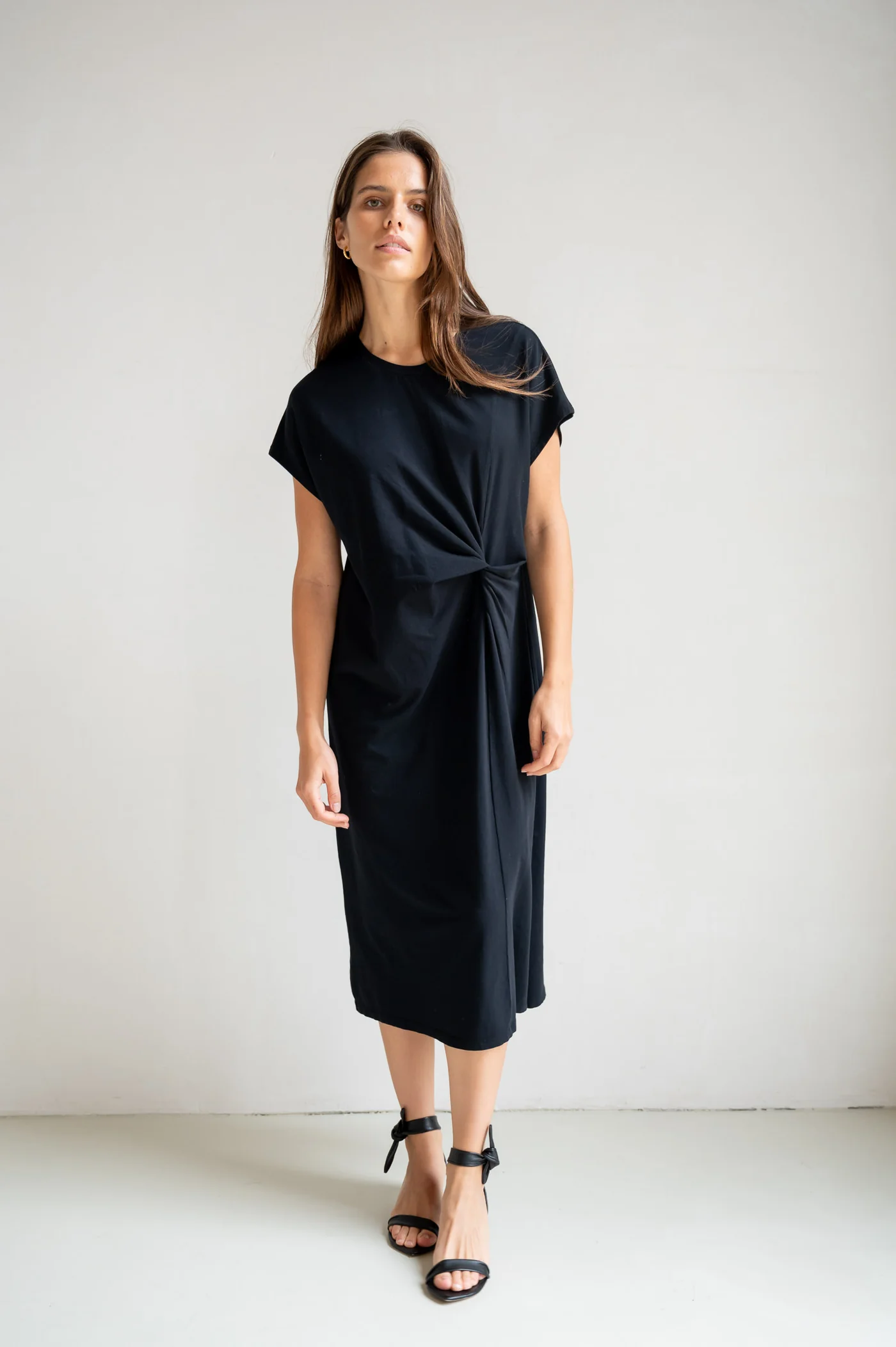 - Fin knytdetalj fram som ger en feminin och smickrande siluett